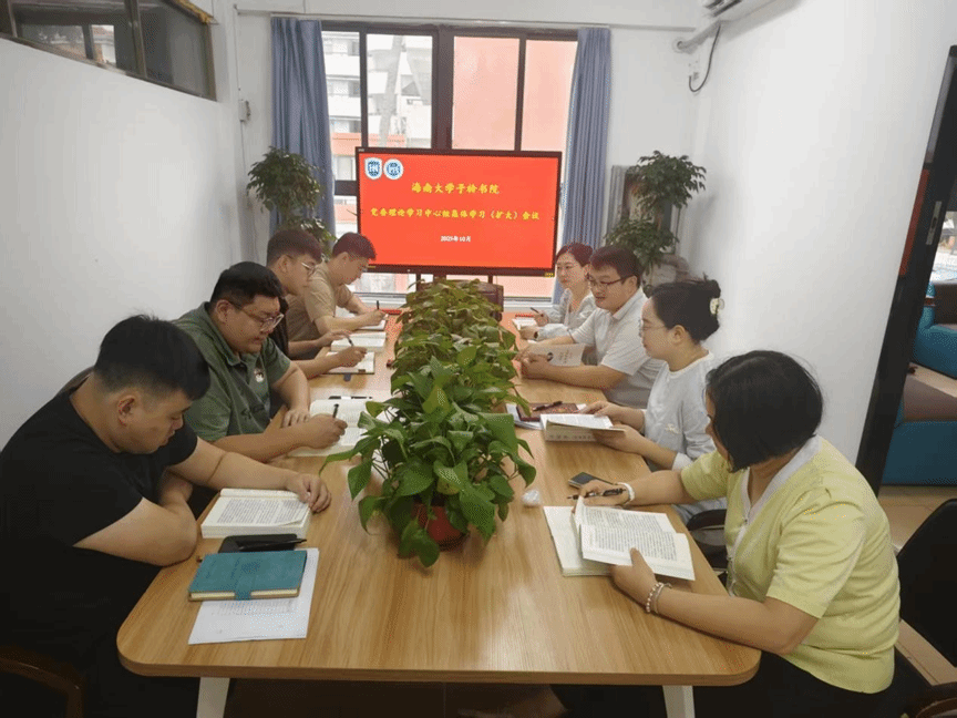 10月20日,子衿书院党委于5栋2楼会议室举行了2025年10月的理论学习中心组集体学习(扩大)会议。书院党委委员、辅导员参加会议。本次会议由书院党委书记李海朋主持。
